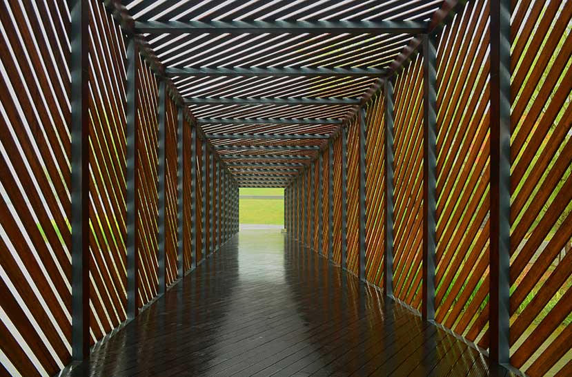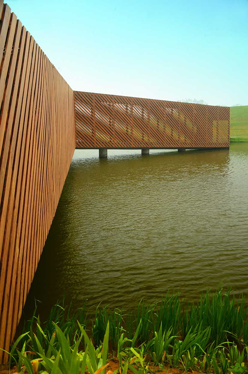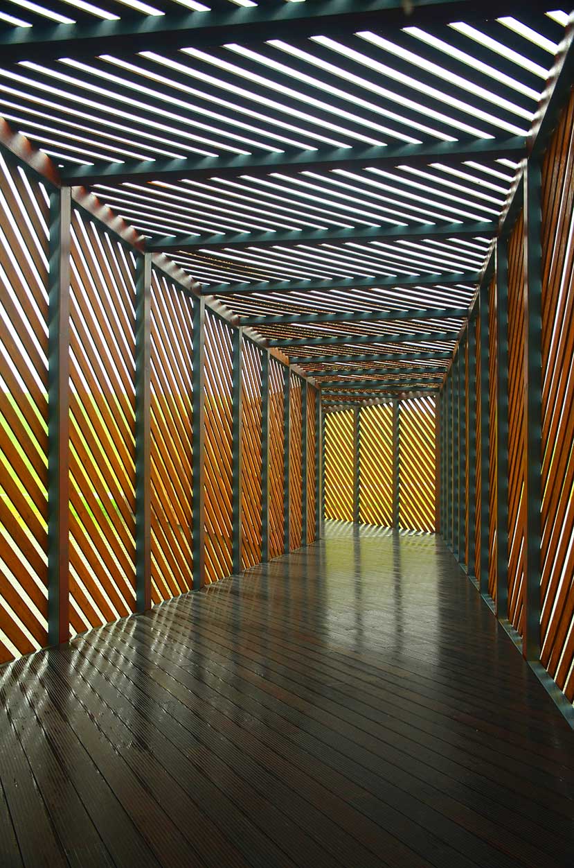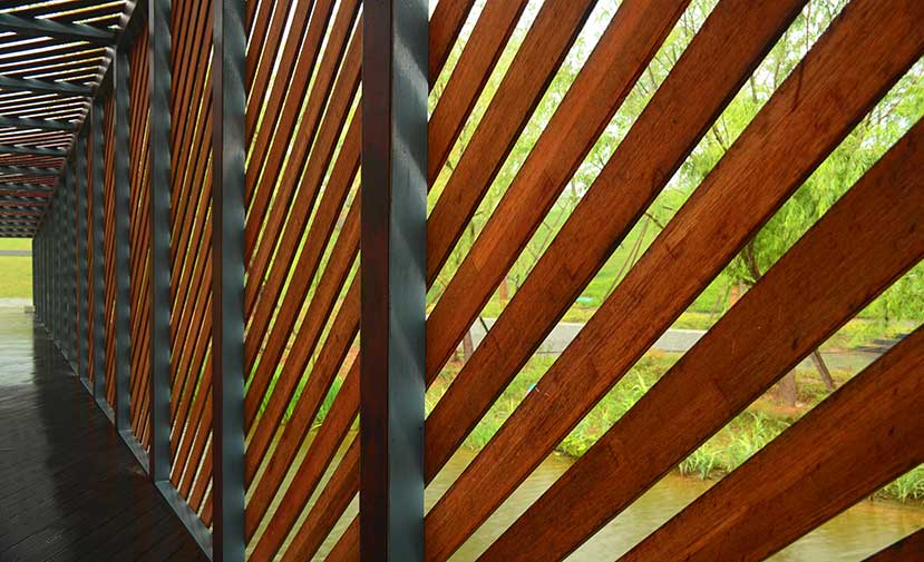 該景觀橋位于鄭州正弘中央公園內(nèi),主體為鋼架結(jié)構(gòu),運(yùn)用桃花江戶外高炭防腐竹地板與淺炭格柵進(jìn)行造型與裝飾。景觀橋設(shè)計(jì)干練、簡(jiǎn)約,直線條與斜線條有力的勾勒與極具親和力的戶外竹材表達(dá)使得景觀橋極具北歐風(fēng)情,成為公園內(nèi)的景觀核心。