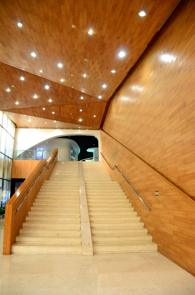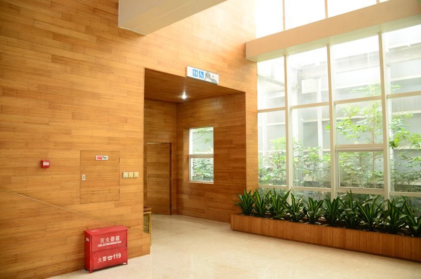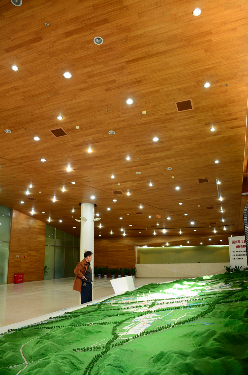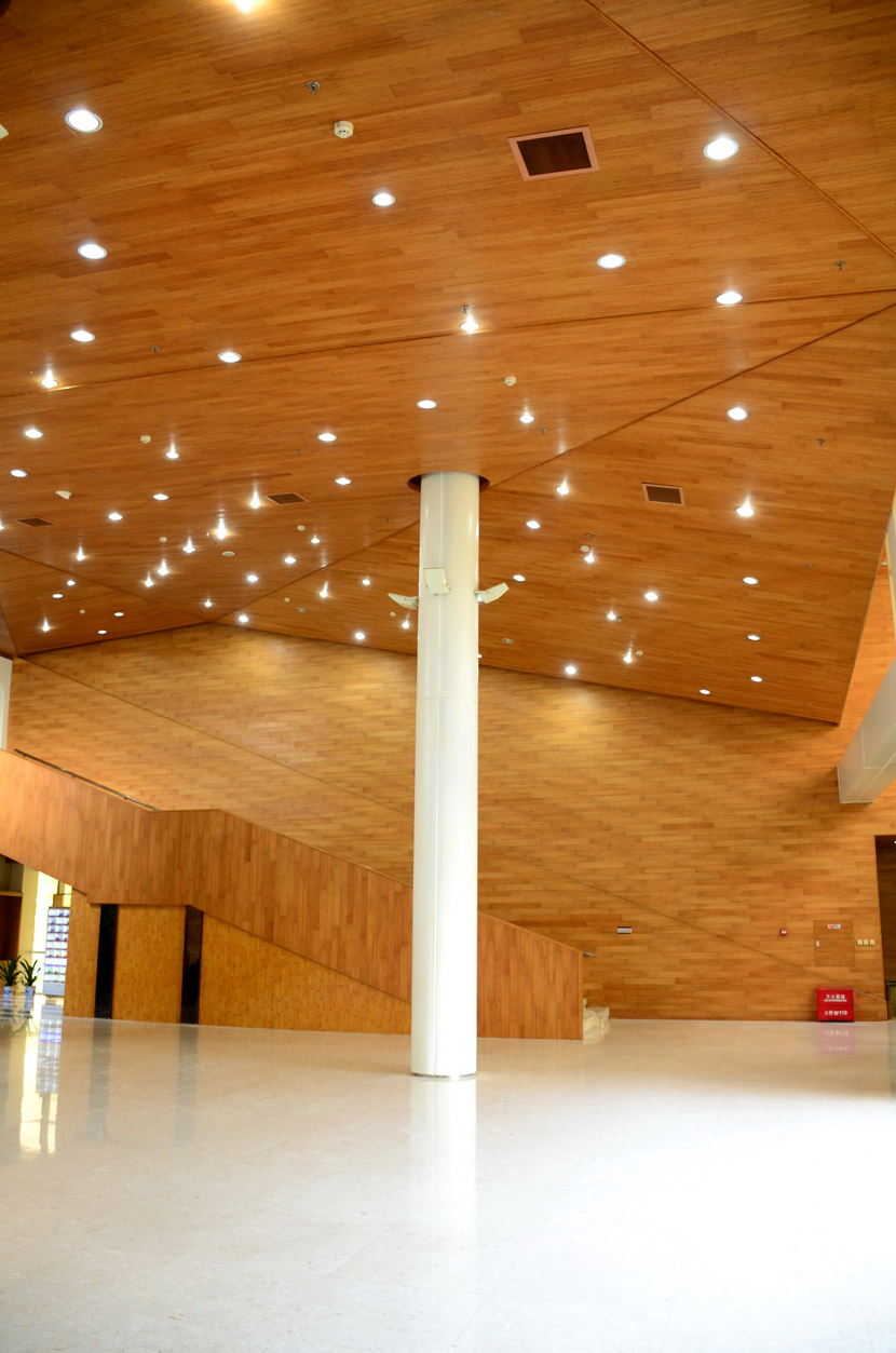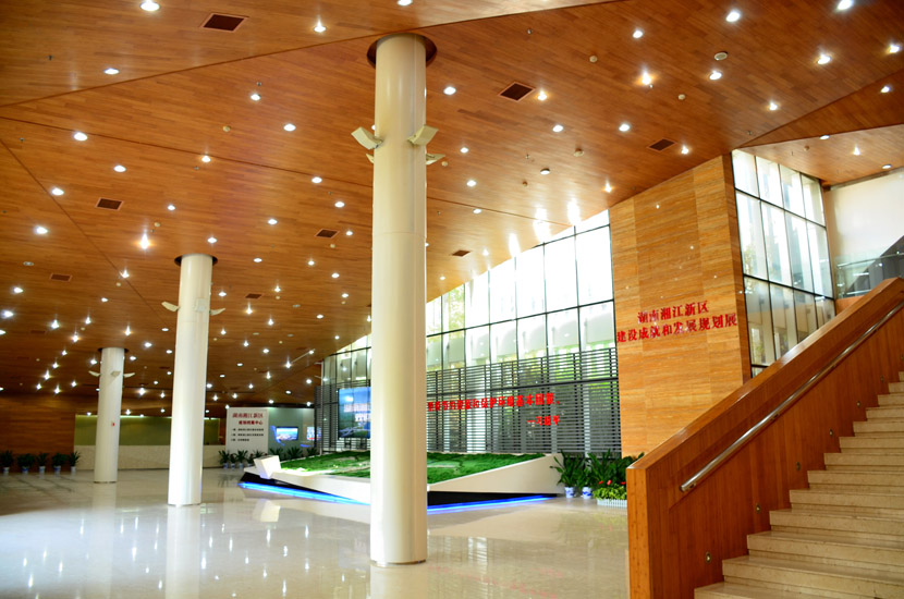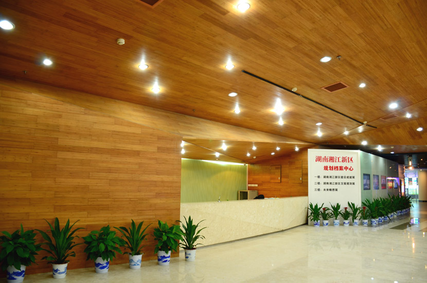 湖南湘江新區(qū)規(guī)劃展示館位于長沙市瀟湘南大道383號(洋湖濕地公園東門對面),總建筑面積7000余平方米。展館成立于2011年6月,主要負(fù)責(zé)展示湖南湘江新區(qū)建設(shè)成就和發(fā)展規(guī)劃,是展示湖南湘江新區(qū)形象的重要窗口。展館大面積采用桃花江室內(nèi)竹材進(jìn)行裝飾,設(shè)計(jì)師運(yùn)用質(zhì)樸的天然竹材烘托出展館的綠色建筑理念和湖湘文化底蘊(yùn),使得展館更具品位。館內(nèi)竹材裝飾歷經(jīng)5年仍然保持完美狀態(tài),沒有任何發(fā)霉、變形和開裂現(xiàn)象,有力證明了桃花江室內(nèi)裝飾竹材的高品質(zhì)。