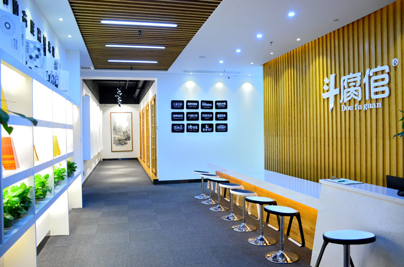 斗腐倌,誕生于2008年,用“當(dāng)倌不為民做主,不如我賣香豆腐”的口號(hào)成為了一個(gè)獨(dú)具“食”代特征的文化品牌!斗腐倌集團(tuán)的室內(nèi)裝飾大面積采用桃花江的室內(nèi)集成材,包括墻面裝飾、吊頂、門檻門框、室內(nèi)的地板及桌椅家具等。整體的裝修風(fēng)格簡約又獨(dú)具特色,竹材的清新與質(zhì)樸和斗腐倌的千年豆腐文化相得益彰,共同彰顯出中華文化的悠遠(yuǎn)流長與博大精深。