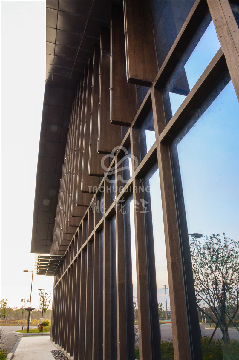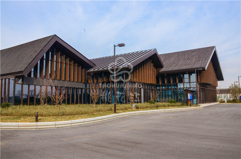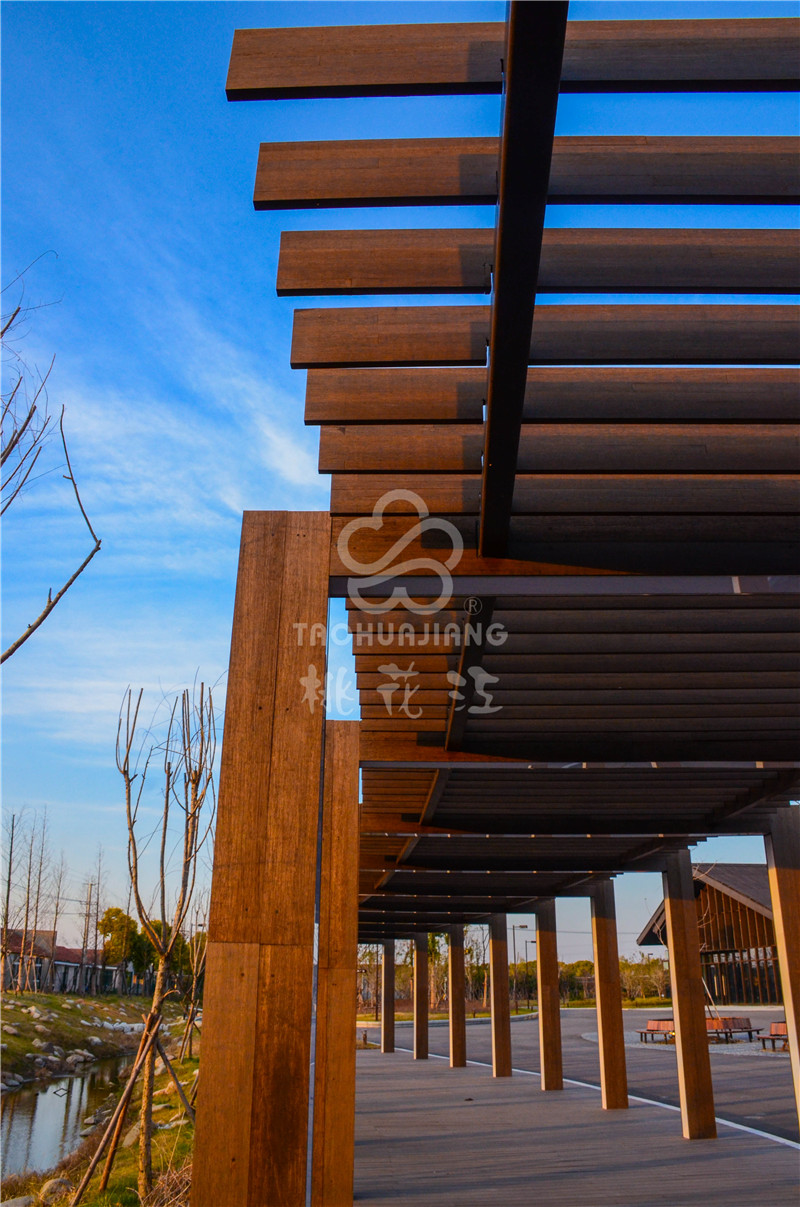 海門農(nóng)副產(chǎn)品會展中心位于江蘇南通海門市開發(fā)區(qū)上海路、黃浦江路交叉口西側(cè),該展銷中心是海門市最大的專業(yè)農(nóng)產(chǎn)品展銷中心。該會展中心的立面裝飾墻板、景觀地板與戶外廊架全部采用湖南桃花江竹材科技生產(chǎn)的高炭防腐戶外竹材。