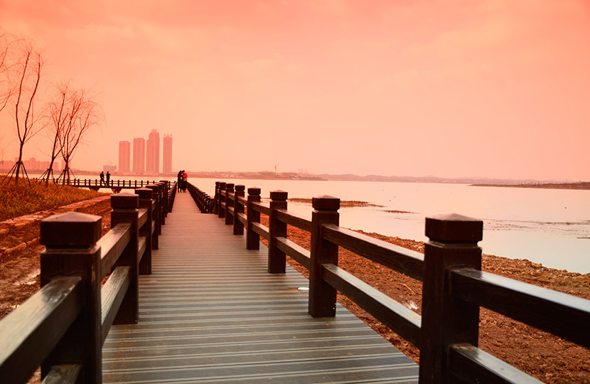 松雅湖國家濕地公園位于長沙星沙,是集防洪調蓄、城市安全飲水、改善城市生態(tài)環(huán)境、完善城市功能配套布局、提升城市生活品位于一體的綜合性工程。 松雅湖生態(tài)公園總占地面積489.62公頃,合7 344.3畝。位于長沙縣北部,北至撈刀河,南至濱湖路,東至東六線(北段)和東八線(南段),西至松雅河,通過澳大利亞GHD公司的規(guī)劃設計,擬以松雅湖為核心,建成一個以湖光山色、自然生態(tài)為基礎的,集休閑、旅游、娛樂、健身、水上活動等功能于一體的綜合性公園。 松雅湖濕地公園全方位使用桃花江竹材科技生產的戶外高炭防腐環(huán)保竹材。