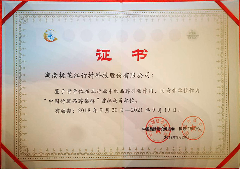 9月20日,“首屆中國集群品牌論壇”在京成功舉行。本次論壇發(fā)布的37個中國竹藤品牌中桃花江竹材科技位列其中,桃花江品牌成功入選“中國竹藤品牌集群”。