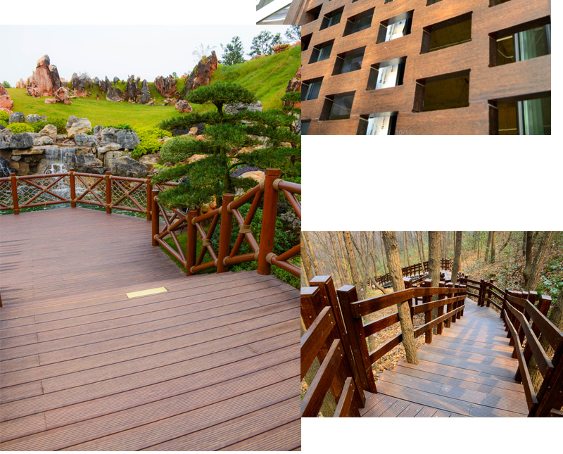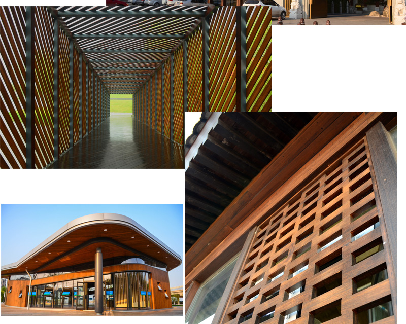 由于竹子的天然特性,其吸濕、吸熱性能高于木材,在穩(wěn)定性上,竹木材料的收縮和膨脹也比實(shí)木材料小,且導(dǎo)熱系數(shù)低,所以還有“冬暖夏涼”的特性。紋理自然、色澤典雅,綠色環(huán)保,高耐候,耐腐蝕,似木非木,碳化高耐竹木板材可與紫檀亂真,是高檔木材的理想替代品。