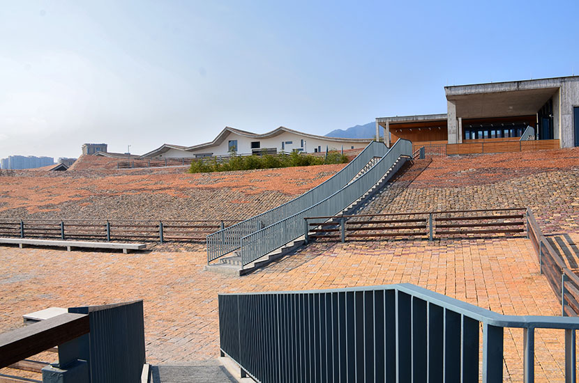 富陽公望美術(shù)館也叫“富春山館”,位于杭州市富陽區(qū),是集博物館、美術(shù)館、檔案館“三館合一”的建筑綜合體,由著名設計大師王澍設計。大師以蘇東坡《題西林壁》里的描繪為靈感來源,按照中國傳統(tǒng)的山水序列,建筑整體構(gòu)筑中呈現(xiàn)近山、遠山瀠洄呼應的構(gòu)筑法則和“三遠”視角,與咫尺之遙的富春山水互相輝映。美術(shù)館設計成內(nèi)山和外山,站在屋頂會看到一整片美術(shù)館都是外山,而頂上兩件小居,正是設計師心中的富春山居。