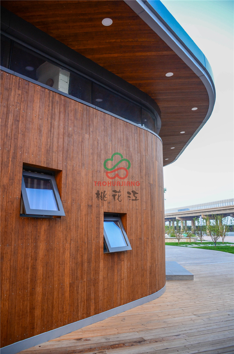 該公園東側(cè)為海濱高速公路,西側(cè)為濱海旅游區(qū)辦公區(qū)域,北臨海博路,南至規(guī)劃海旭道,是從城市空間到海邊的過(guò)渡型景觀。項(xiàng)目的建設(shè)是在尊重歷史和現(xiàn)實(shí)條件基礎(chǔ)上,結(jié)合先進(jìn)的生態(tài)建設(shè)理念,大面積運(yùn)用了桃花江竹材科技的環(huán)保竹材作為主體裝飾材料,公園內(nèi)的主體建筑,采用桃花江竹材科技的全竹裝飾來(lái)裝潢,高炭防腐竹材做外墻和吊頂裝飾,色澤明亮,渾然一體,既現(xiàn)代又傳統(tǒng)的竹材裝飾風(fēng)格為公園營(yíng)造自然、郊野景觀氛圍,為市民提供一個(gè)全新的休閑娛樂(lè)場(chǎng)所。