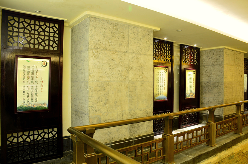 湖北隨州大洪山景區(qū)占地305平方公里,位于隨州、鐘祥、京山三縣交界之處,最高峰海拔1055米。大洪山素有“佛教名山、養(yǎng)生天堂”之美譽(yù),景區(qū)風(fēng)光秀麗,景觀(guān)奇特,是國(guó)家級(jí)風(fēng)景名勝區(qū)和國(guó)家級(jí)森林公園。 大洪山景區(qū)核心——大慈恩寺大量使用桃花江竹材運(yùn)用于室內(nèi)裝飾,新型環(huán)保竹材既保持原竹特有的質(zhì)感和性能,又克服了其易干裂和走型的不足,大大增加適用性,而且蘊(yùn)含更高的文化價(jià)值,讓人不僅有回歸自然之境,還能細(xì)細(xì)品味悠悠幾千年的中國(guó)竹文化。