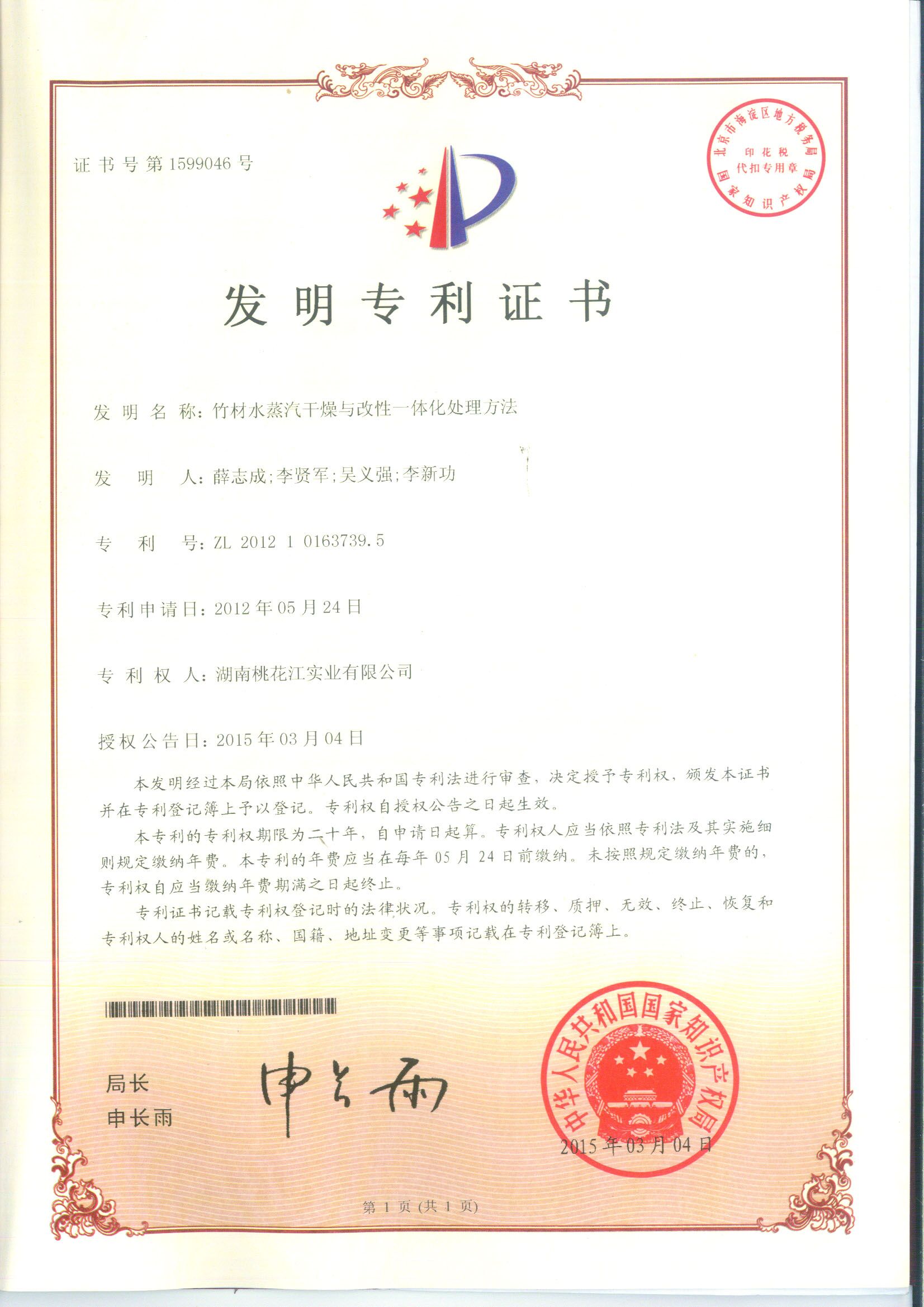 2006年,桃花江經(jīng)過多年研究,逐漸掌握了通過增加竹子的密度,同時經(jīng)過炭化和防腐的新型竹材加工技術(shù),成功解決了竹制材料不能廣泛運(yùn)用于戶外的世界性難題,獲得了竹制材料研究方面的巨大的突破。該項(xiàng)技術(shù)完美的解決了竹材戶外運(yùn)用上的防腐性、耐磨性和穩(wěn)定性問題。這種技術(shù)被稱為“高炭防腐技術(shù)”,2006年這項(xiàng)技術(shù)已經(jīng)申請發(fā)明專利,是我國戶外竹材研究領(lǐng)域的首個個發(fā)明專利,故桃花江竹材科技被譽(yù)為是我國竹材領(lǐng)域“高炭防腐的發(fā)明者”。此后桃花江竹材科技進(jìn)行了大量的相關(guān)的實(shí)驗(yàn)室檢測和實(shí)際測試,結(jié)果證明,高炭防腐技術(shù)是目前唯一可以讓竹子戶外應(yīng)用的解決辦法。未經(jīng)處理過的竹子,耐久性等級為5級(EN350標(biāo)準(zhǔn)),耐久性不夠。經(jīng)過熱高炭防腐技術(shù)處理后的竹子,尺寸可進(jìn)行定制,材料穩(wěn)定性提高了50%左右。耐久性也從原來的5級提高到最高等級1級(EN350-1標(biāo)準(zhǔn)1級,ENV807標(biāo)準(zhǔn)1級,EN113標(biāo)準(zhǔn)1級)經(jīng)過熱處理的竹子同時可以有效地抵抗淺表真菌。(EN152標(biāo)準(zhǔn)0級)桃花江高炭防腐戶外地板,使用風(fēng)險等級達(dá)到4級(標(biāo)準(zhǔn)EN335)是市場上唯一達(dá)到此標(biāo)準(zhǔn)的竹產(chǎn)品。