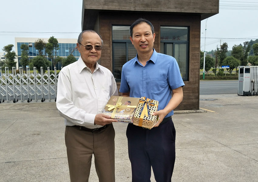 臨行前,索枚先生送給薛總禮物,并進行合影留念。